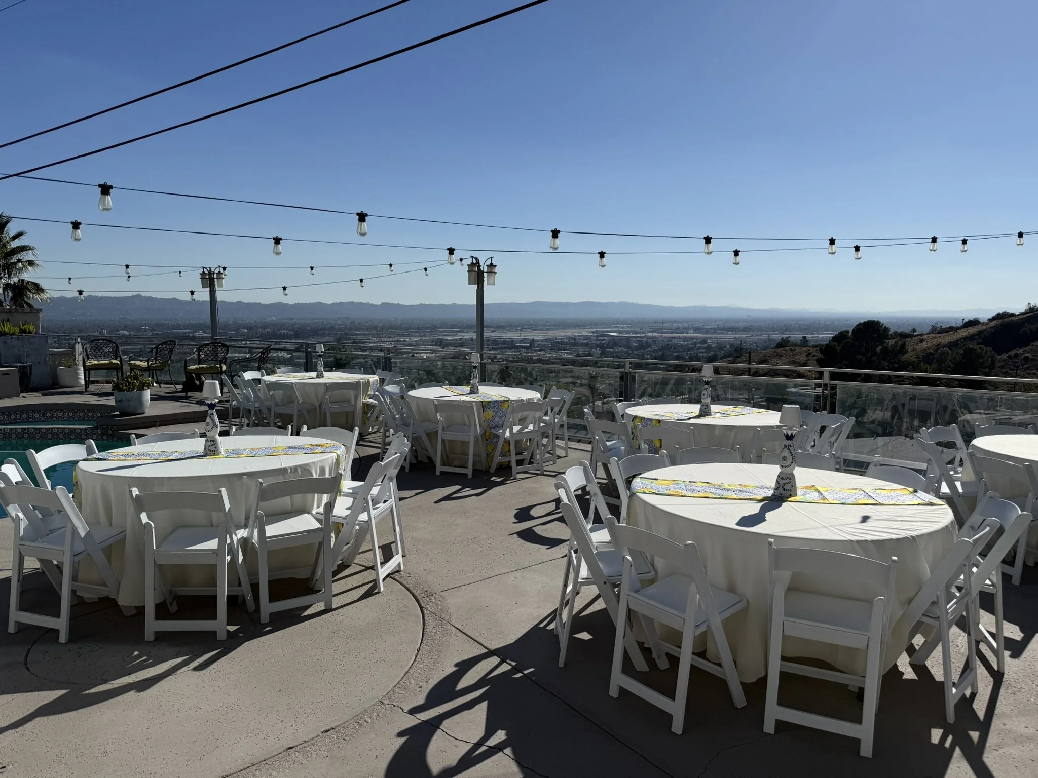 For most orders, we schedule delivery one day before your event so nothing feels rushed. If that is not possible, we deliver the morning of the event within an agreed time window. Circumstances can vary because of access rules, weather, or traffic, so timing may change, however we always try to deliver the day before and will keep you updated. Standard pickup is the day after your event. Drop off is curbside by default, setup is available, add it to your quote request.